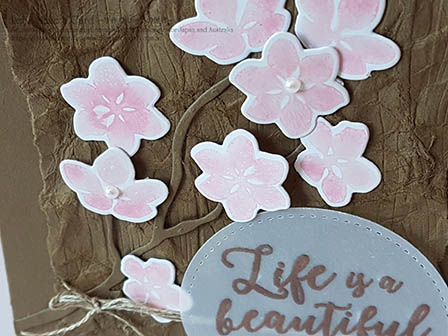 It's cherry blossoms season in Japan now so here are my cherry blossoms.季節的に桜の開花!を意識していみました。桜の木っぽくしたかったので、このテクニックがピッタリでした!パインウッドプランクスエンボス加工したペーパーをさらにくシュクシュ。ね、木の皮の雰囲気出てません?!